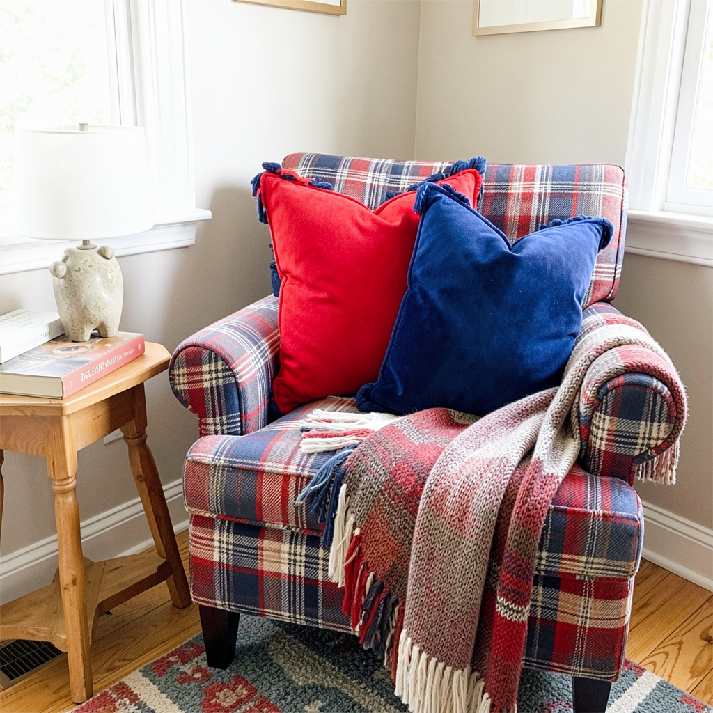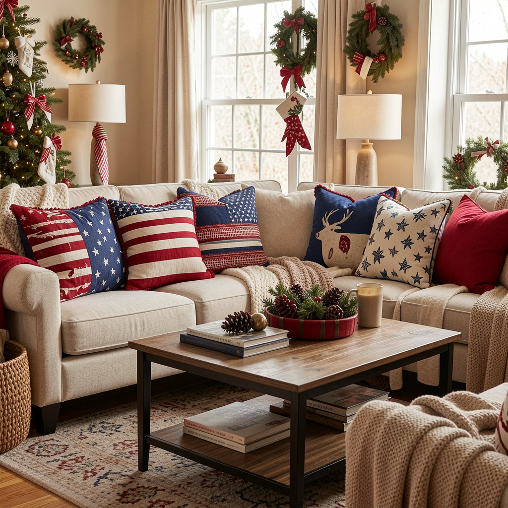 Swapping out your regular cushions for themed ones is a quick way to refresh your living room. Adding pillows in patriotic colors or patterns can instantly change the mood of the space. This approach is ideal if you prefer subtle decorating without making major changes. It also keeps your room comfortable while still reflecting the holiday spirit. By mixing textures and shades, you can create a cozy and visually appealing environment that feels festive yet balanced.