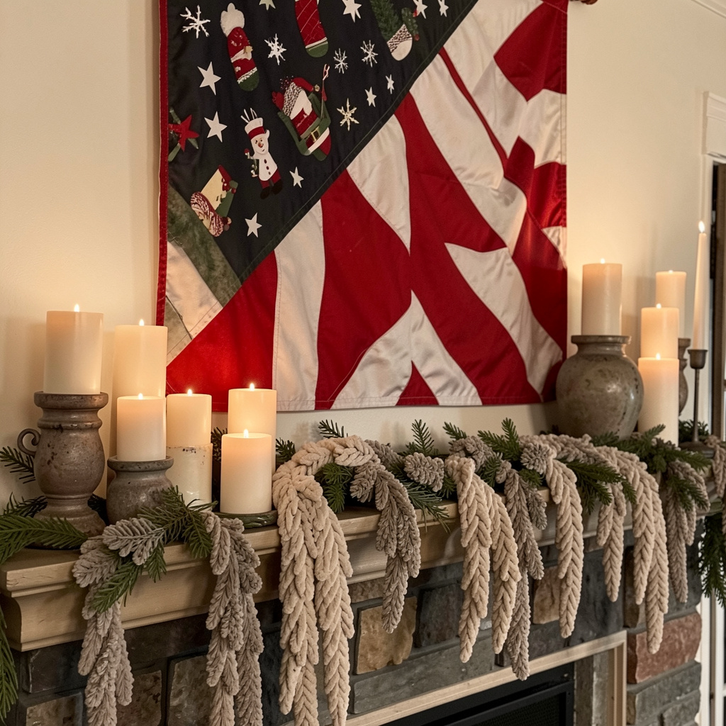 Decorating your mantel can serve as a focal point for your holiday setup. A large flag or themed banner can anchor the display, while smaller accents like candles or decorative items add depth. Layering different elements creates a balanced and visually appealing arrangement. You can also include soft lighting to enhance the overall ambiance. This combination of textures and colors helps transform your mantel into a standout feature that captures attention and celebrates the occasion.