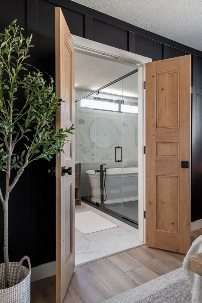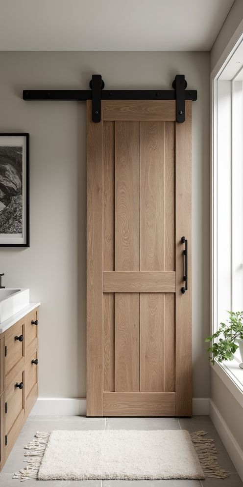 Lovely bathroom doors focus on grace, charm, and aesthetic appeal. Soft finishes, subtle textures, or elegant paneling make the entrance both functional and attractive. They pair beautifully with neutral walls, minimalist fixtures, and polished flooring. Lovely doors enhance the room’s overall vibe, creating a welcoming, stylish, and harmonious space. This option ensures your bathroom feels thoughtfully designed, balanced, and timeless, offering a visually appealing entrance that elevates the entire aesthetic.