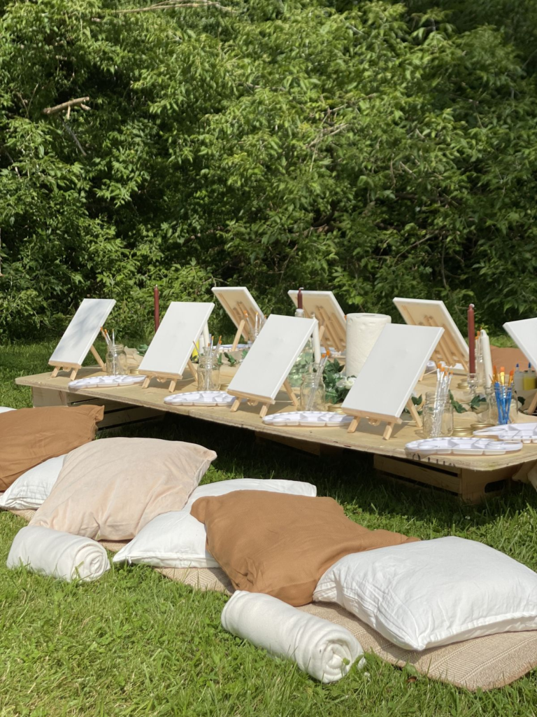 Adding a creative activity like sip and paint can make your beach party truly unique. Guests can enjoy painting while relaxing by the ocean, making it a fun and interactive experience for friends and family.