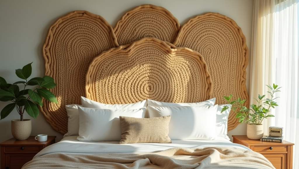Seagrass or woven rattan headboards introduce texture and warmth to a bedroom. Their natural fibers and basket-weave patterns create a relaxed, beachy aesthetic that complements neutral linens and ocean-inspired color palettes. Light and shadow interact beautifully with the weave, adding subtle visual interest throughout the day. Pairing a woven headboard with smooth textiles, soft pillows, and contrasting furniture enhances the coastal vibe. For a budget-friendly alternative, large wicker placemats or panels can be mounted to the wall to achieve a similar textured effect. Woven headboards provide a tactile, inviting foundation for a serene bedroom space.
