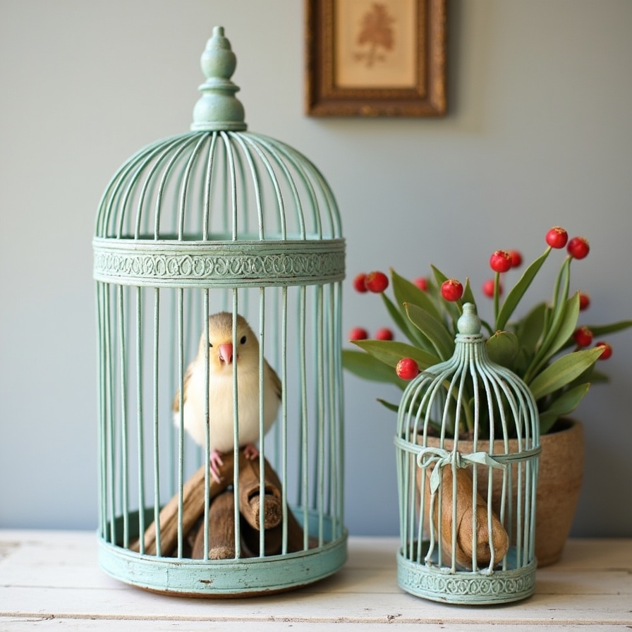 Vintage birdcages carry character and charm that modern pieces often lack, showcasing aged metals, worn finishes, and unique designs. These elements create an authentic, timeless look that feels meaningful rather than mass-produced. Pairing the cage with antiques, lace, dried flowers, or soft fabrics enhances its nostalgic appeal. Neutral and muted tones preserve the vintage aesthetic while personal accents add warmth. A single well-styled vintage cage can become a conversation starter, giving rooms emotional depth and a sense of history, making it a captivating decor piece that feels both authentic and intentional.