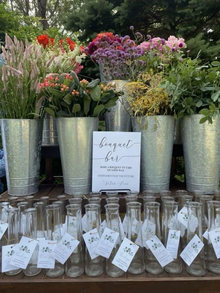 Adding personalized tags brings a thoughtful touch to your bloom bar. Small labels allow guests to write their names or short messages to accompany their bouquets.