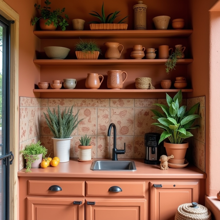 3. Southwestern-Inspired Kitchenette with Terra Cotta Accents