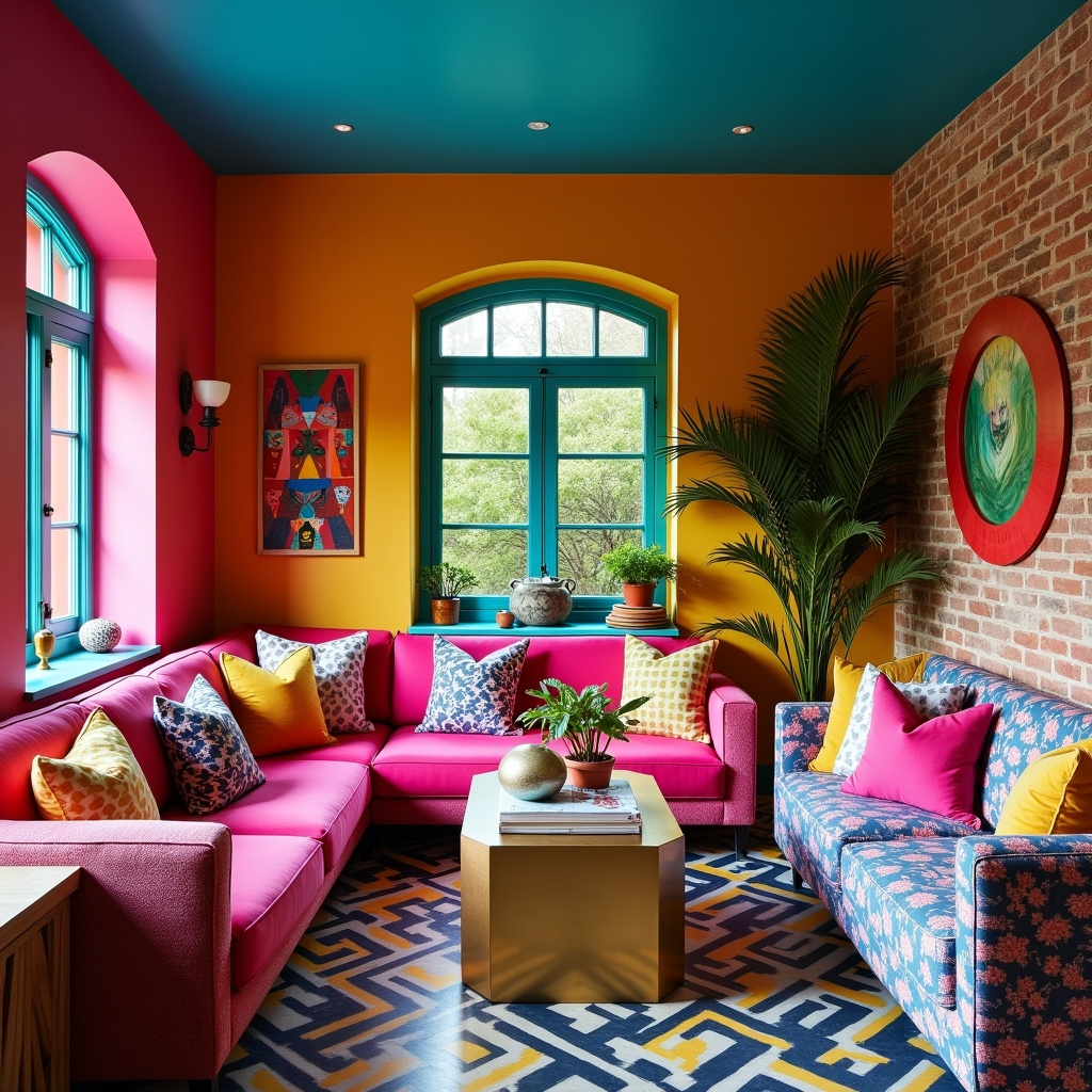 This maximalist approach celebrates abundance rather than singular pieces. Sunlight bounces across textiles, creating a dynamic, lively atmosphere. Bold, fearless, and joyful, the space feels like a celebration frozen in time—impossible not to smile in.