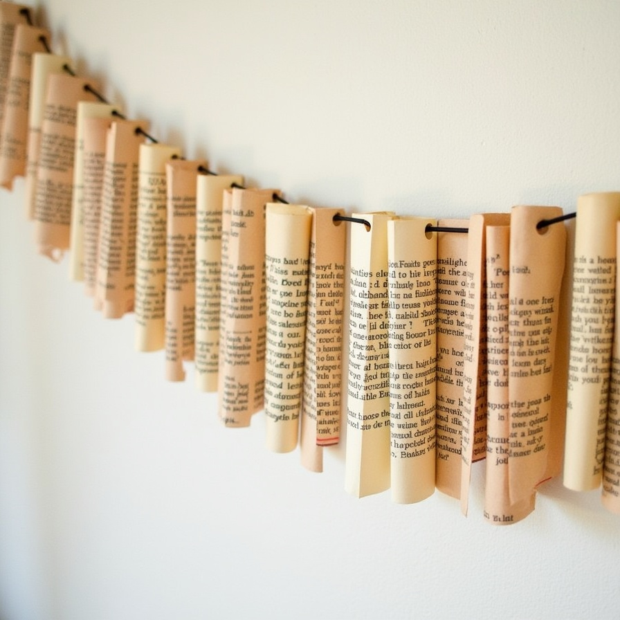 Handmade book page garlands combine creativity and nostalgia into elegant decorations. Strung together, the pages form a flowing, artistic display that brings warmth and literary charm to any room. These garlands are ideal for parties, reading nooks, or seasonal decor.