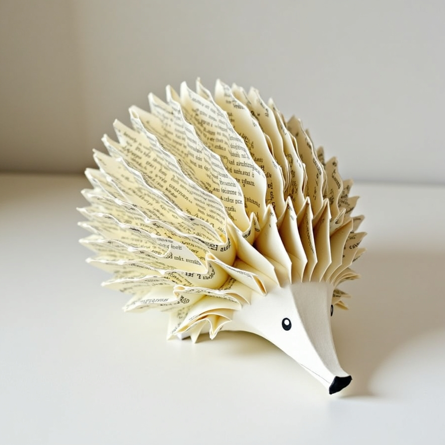 Folded book page hedgehogs turn ordinary books into whimsical sculptures. Each hedgehog, complete with carefully folded features, adds playful charm to shelves or tables. This craft appeals to both animal lovers and literary enthusiasts, merging storytelling with imaginative design.