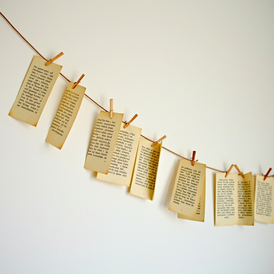 The subtle textures and vintage tones of the paper enhance the visual appeal, creating a cozy and inviting atmosphere. Each page contributes to the overall story, making the garland more than just decoration—it becomes a narrative in itself.