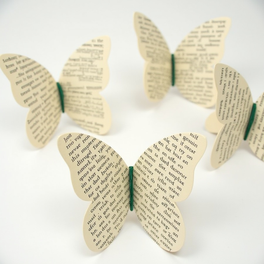 Creating butterflies from book pages transforms everyday stationery into a work of art. These cards are perfect for sending personalized messages or uplifting notes, with each butterfly adding a three-dimensional flourish that captivates the eye. The text on the pages adds a literary element, enriching the emotional and aesthetic appeal of the design.