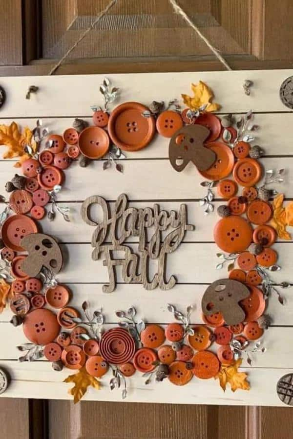 Turn seasonal crafting into a vibrant celebration with button wreaths. Ordinary buttons in autumn shades—orange, brown, and red—can transform into a welcoming “Happy Fall” display.