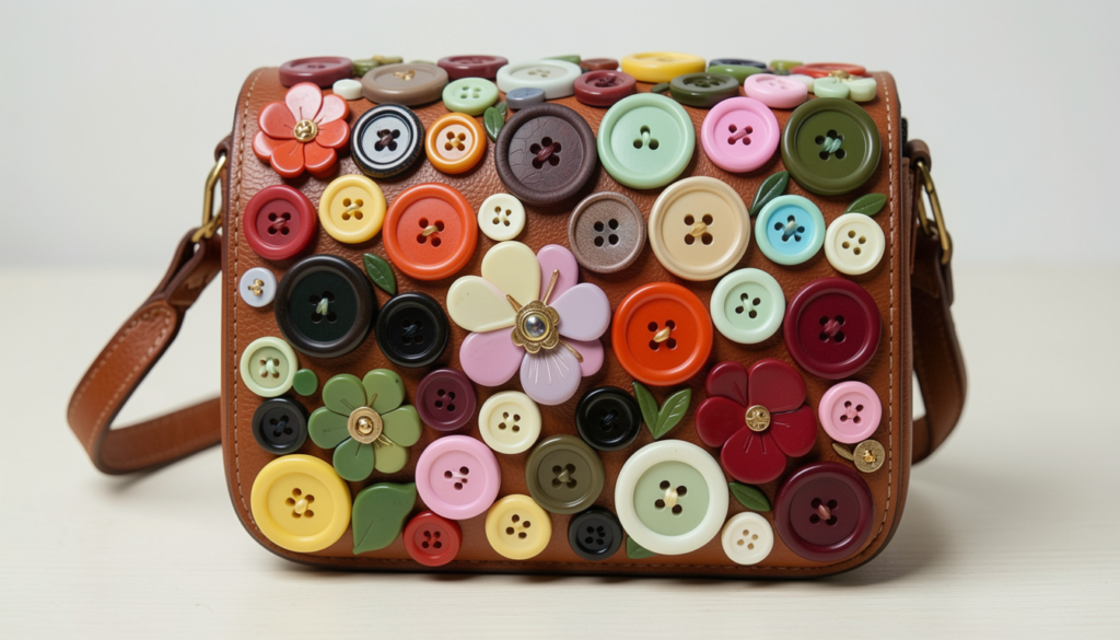 Elevate a plain bag into a fashion accessory with buttons. Layering colorful buttons on a clutch turns it into a personalized statement piece.
