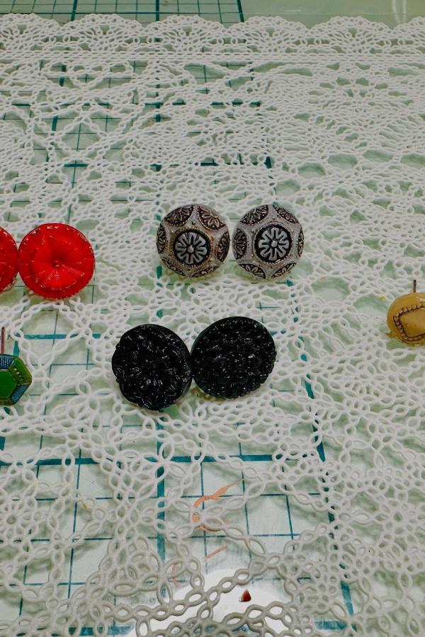 Vintage-inspired lace provides the perfect backdrop for button art. Delicate earrings featuring vibrant glass buttons are perfect for crafters looking to elevate everyday accessories.