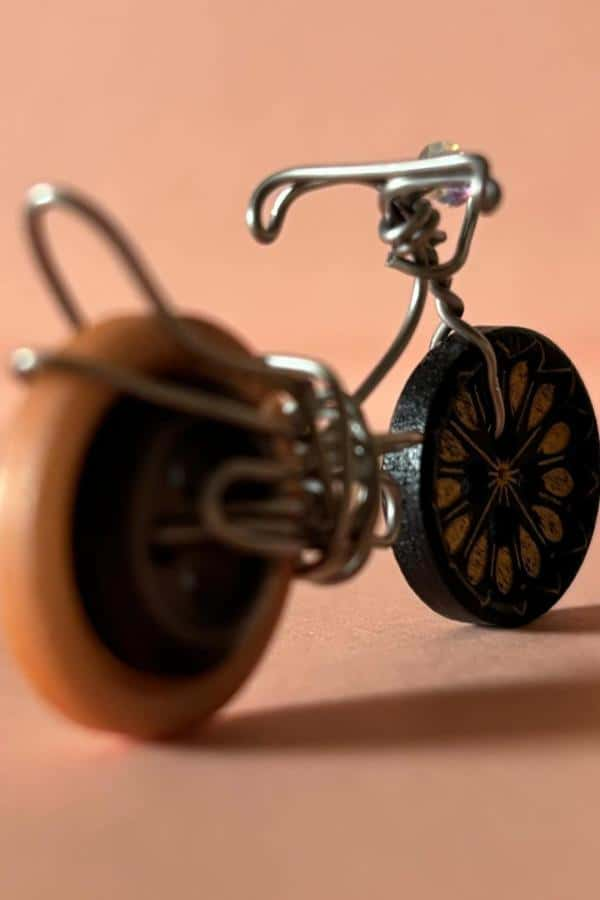 Combine buttons with wire to create whimsical, three-dimensional artwork. Miniature bicycles crafted from earthy-toned buttons and thin wire blend artistry and engineering.