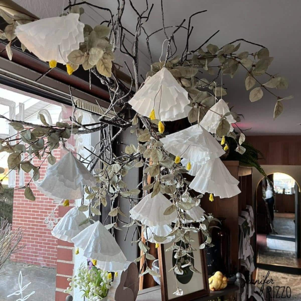 14. Hanging Coffee Filter Flower Decorations