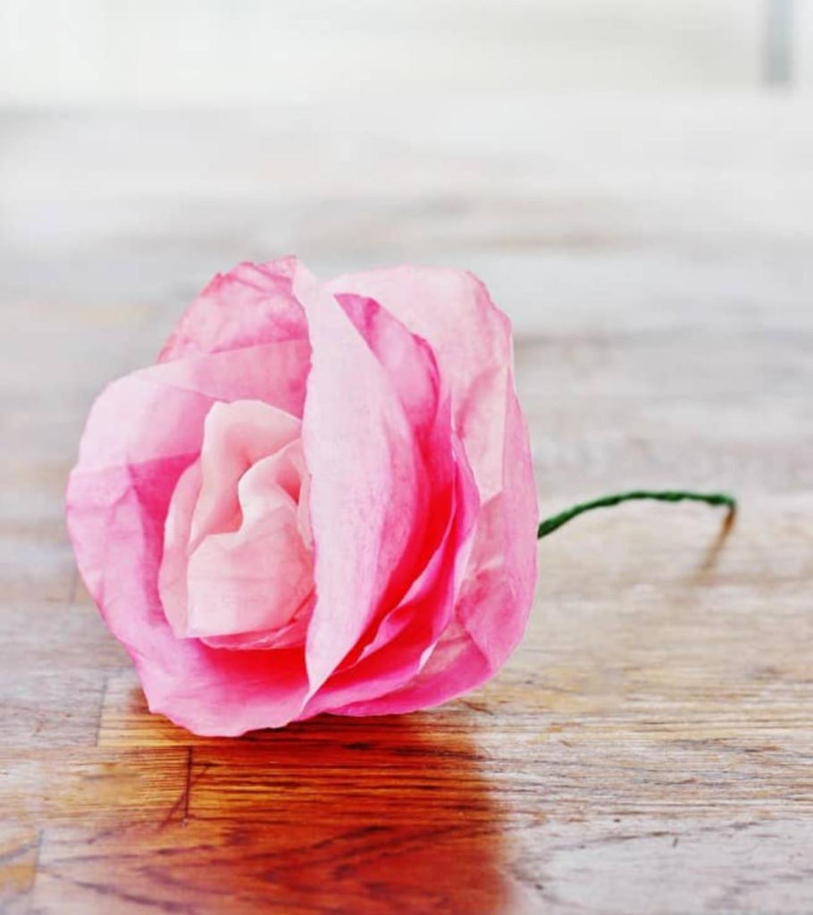 7. DIY Coffee Filter Rose Craft