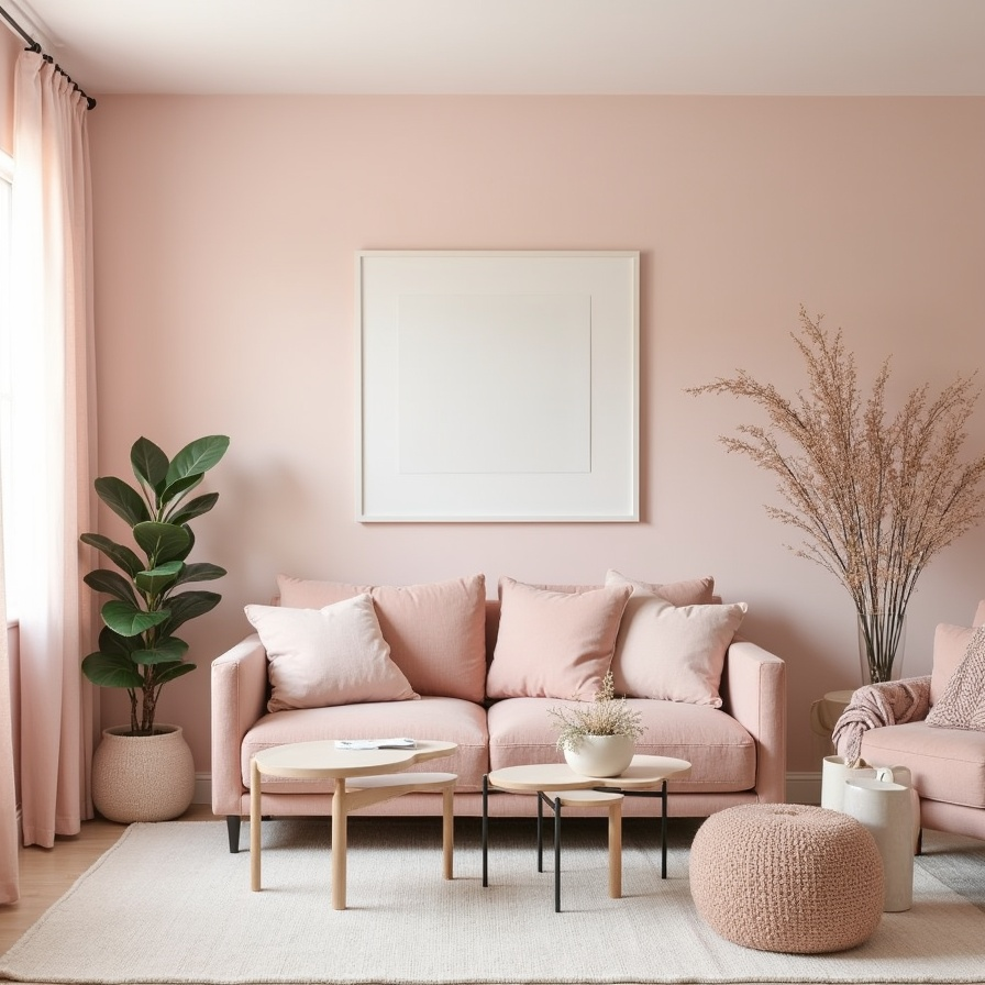 A blush-toned living room has a natural charm that feels soft and inviting. When the walls, sofa, and rug share the same gentle pink hue, the space instantly feels cohesive and harmonious. Instead of appearing overly sweet, the monochromatic style creates a romantic atmosphere that feels calm and thoughtfully styled.
