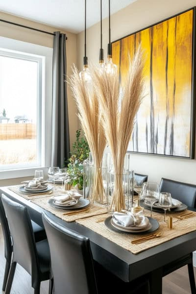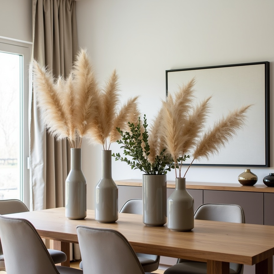 Contemporary Pampas Grass Centerpiece for a Modern Dining Room