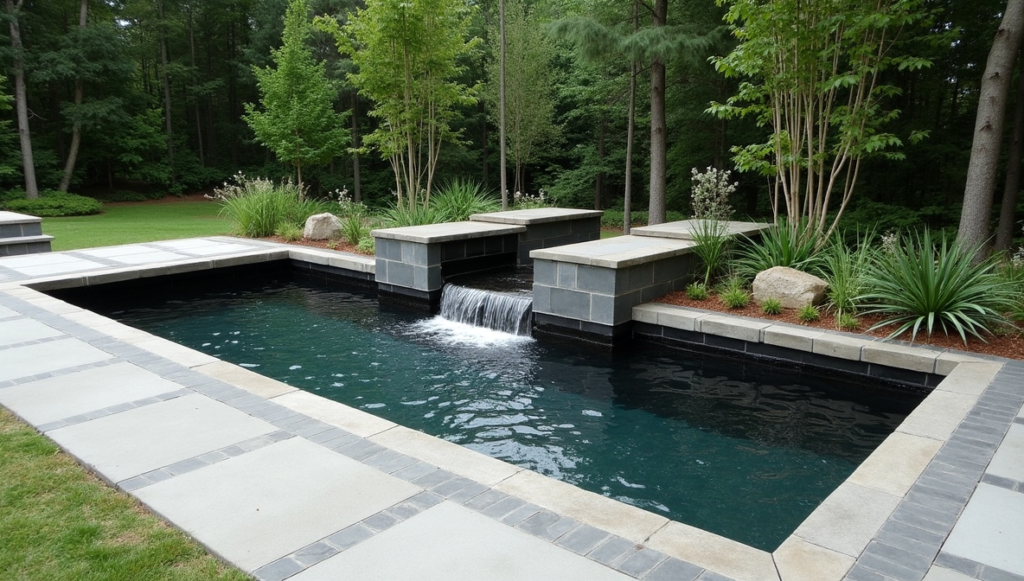 For a contemporary look, a rectilinear pond with sharp edges offers a clean aesthetic. Construct the frame with masonry blocks or treated timber, line with EPDM, and cap with smooth stone or porcelain pavers. A stainless steel blade weir creates a dramatic water sheet that is both quiet and striking.