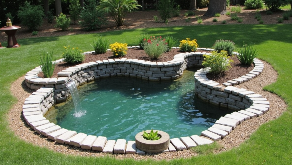 Include a mini spillway or side outlet, a pea-gravel wildlife beach, and vertical grasses or dwarf lilies. This modular, above-ground design scales easily, pairs well with a bog filter, and withstands freeze-thaw cycles.
