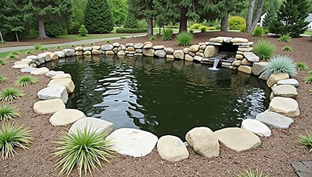 Plant shelves with sweet flag, dwarf cattail, and iris, adding a compact lily in the deep zone. Finish with stepping stones, a GFCI-protected outlet, and a mulch-free buffer to prevent soil from entering the water. The result is a natural focal point that is both beautiful and low-maintenance.