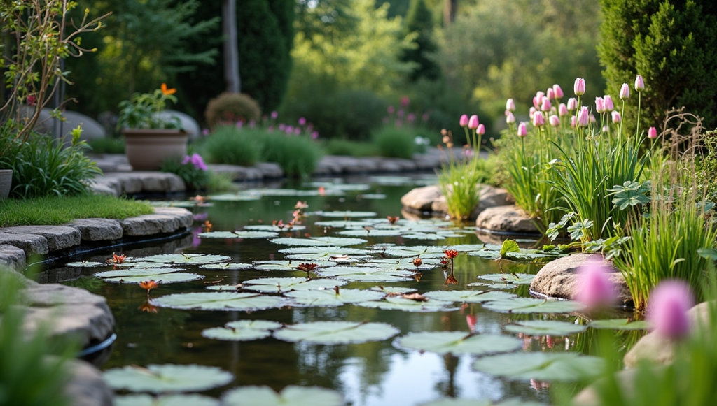 Even a small bubbler or pebble zone can improve oxygenation and prevent mosquitoes. Thoughtful grading and plant selection create a thriving microhabitat that looks natural and stays clear.