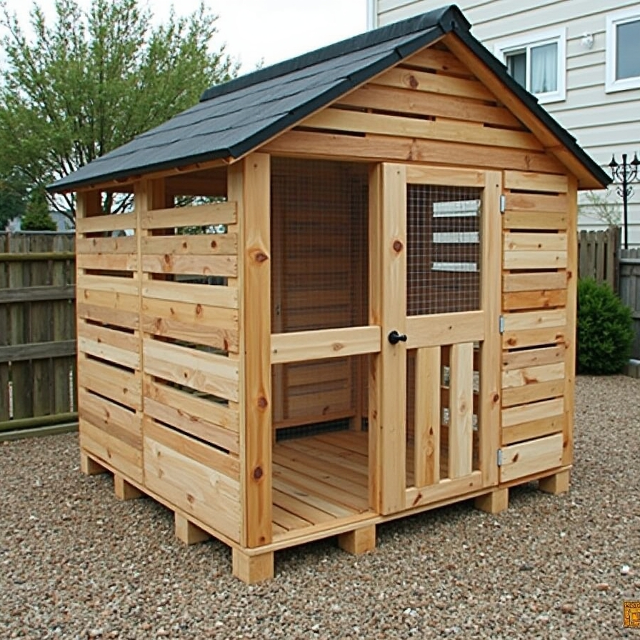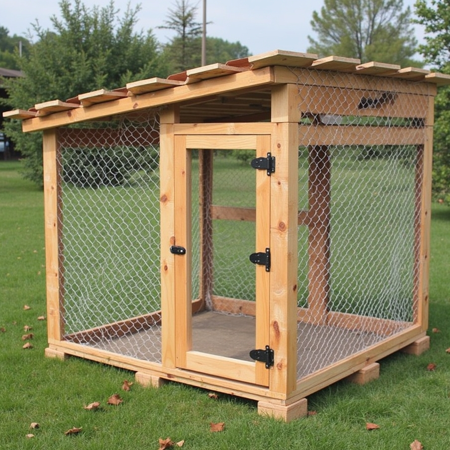 Add weatherproof material to the top to protect against rain. Inside, place soft bedding to ensure comfort. You can also attach a small outdoor run for extra space. This design is compact, affordable, and ideal for small backyard setups where space is limited but functionality is still needed.