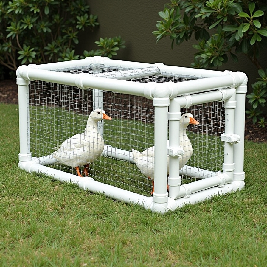 A lightweight PVC duck run is easy to build and highly practical for backyard use. Begin by assembling a rectangular frame using PVC pipes and connectors. This material is ideal because it is both affordable and easy to handle. Once the frame is complete, secure it firmly to the ground.