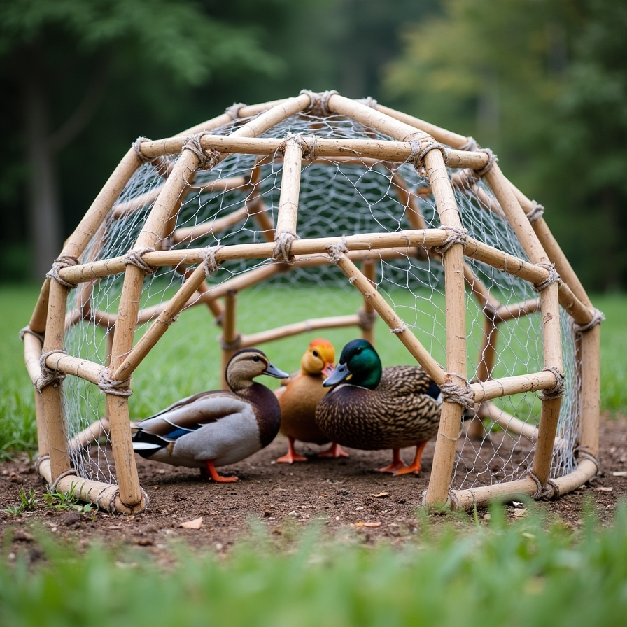 Cover the frame with chicken wire or mesh for protection. Inside, include water access such as a shallow pond or container. The dome shape distributes stress evenly, making it strong against wind and weather. This design is spacious, secure, and visually unique, offering ducks a safe and comfortable environment.