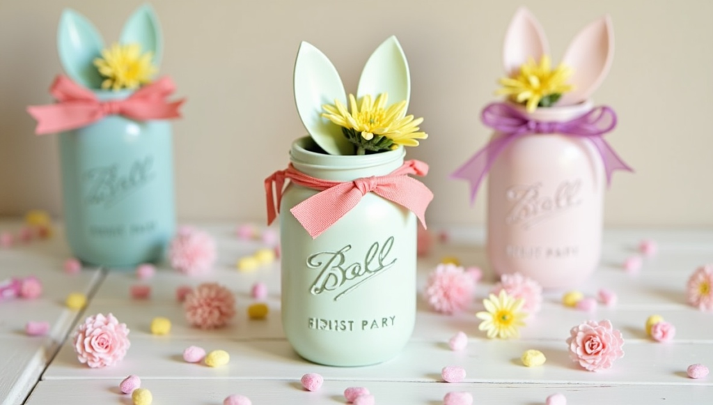 Mason jars can be turned into adorable Easter decorations with only a few inexpensive supplies. By painting the jar in pastel shades and adding bunny ears, ribbons, or small flowers, you can create a festive centerpiece. These jars can hold candy, small flowers, or LED lights for extra charm. Children often enjoy helping with this craft because it is simple and fun. Once completed, the decorated jars can brighten up your Easter table or be displayed on shelves and countertops around the home.