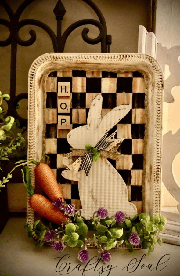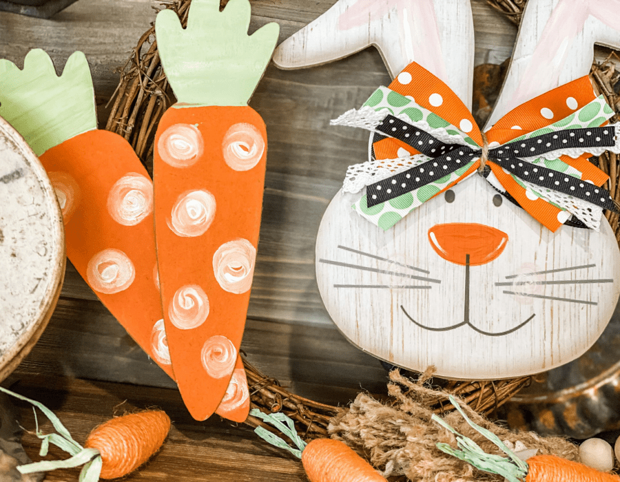 A simple bunny sign from the dollar store can easily become a charming Easter decoration with a little creativity. Start by repainting the sign in soft pastel colors or neutral tones to match your home décor. Many of these signs already include small decorative elements like carrots, which can be enhanced with paint, twine, or ribbon. Adding small floral accents or patterned bows can give the bunny a personalized look. This affordable project allows you to transform a basic decoration into something unique that looks much more expensive than it actually is.