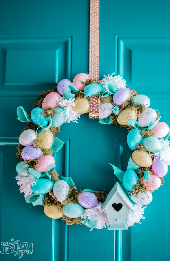 17. Easter Egg and Birdhouse Wreath