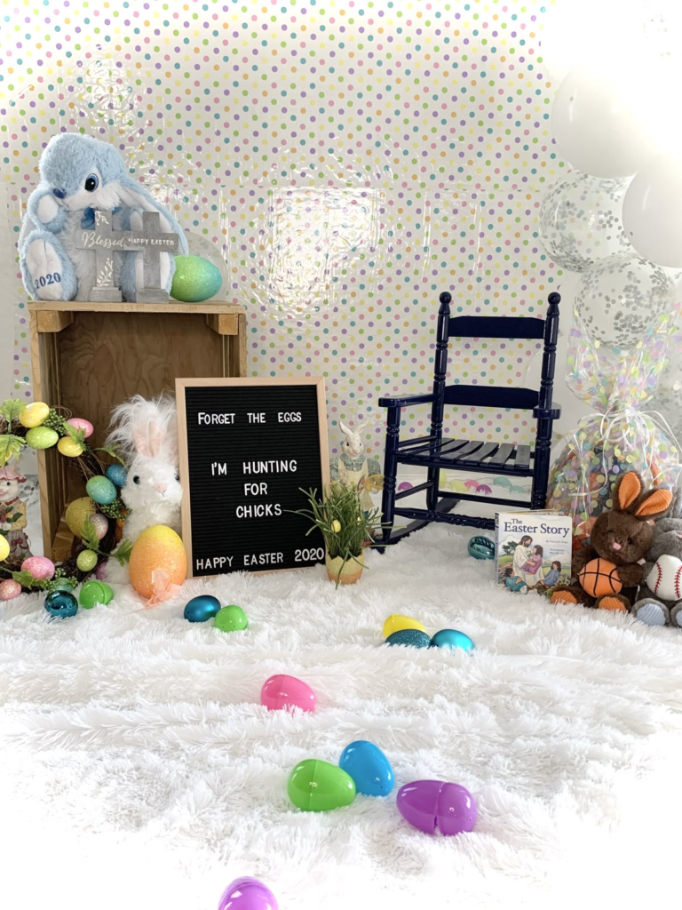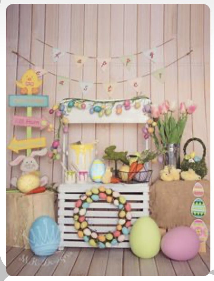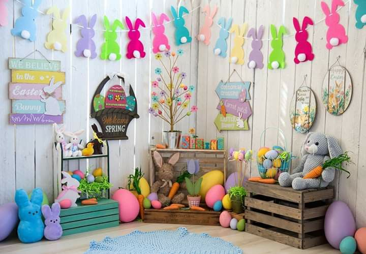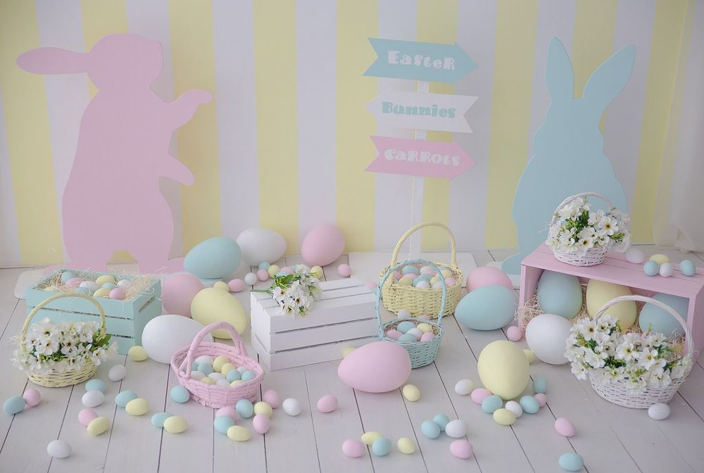 A cute Easter backdrop adds lighthearted charm to your celebration. Soft pastels, playful patterns, and small decorative accents help create a welcoming and cheerful environment.