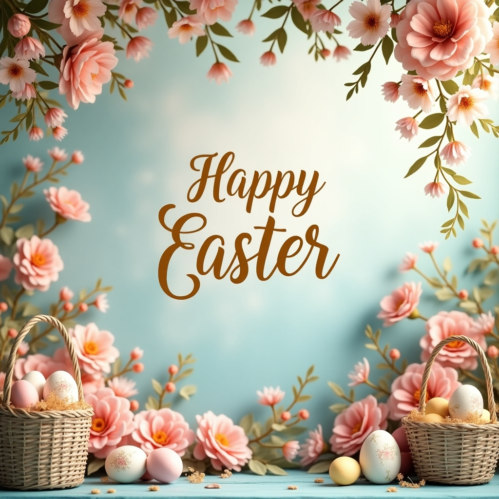 By selecting a Happy Easter-themed backdrop, you create a straightforward yet charming display that captures the joy and positivity of the holiday in a tasteful and memorable way.