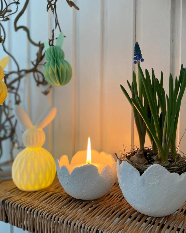 Bring a delicate, nature-inspired touch to your Easter decor with bowls shaped like cracked eggshells. These clay creations, often styled in soft whites or pastel tones, add a subtle elegance to any table or shelf. Perfect as candle holders or mini planters, they create a cozy, organic aesthetic.