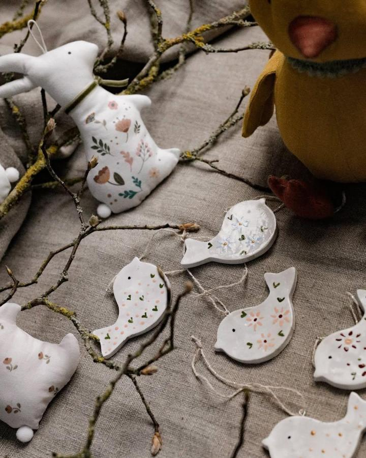 Bird-shaped clay ornaments add a subtle, spring-inspired charm to your Easter setup. Painted with soft pastels and floral details, these pieces capture the essence of the season.
