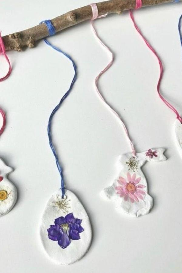 Bring the outdoors in with salt dough ornaments pressed with flowers and leaves. Kids can experiment with colors and textures, creating charming spring garlands.