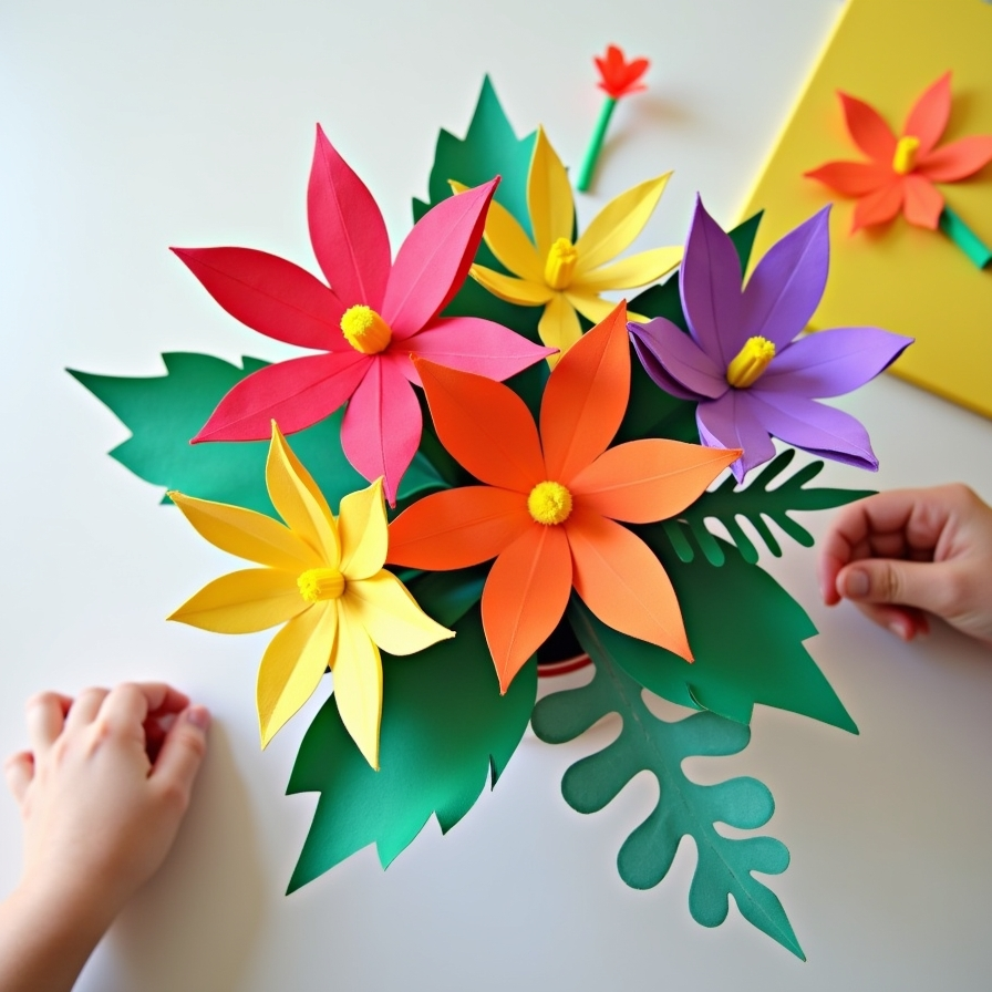 Add glitter or layered paper for extra texture. This craft enhances fine motor skills while giving children a sense of pride in their handmade floral masterpieces.
