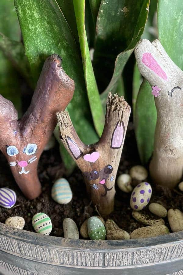 Transform ordinary sticks into playful bunnies using paint and pastel accents. Add tiny flowers, eyes, or baskets for extra personality.