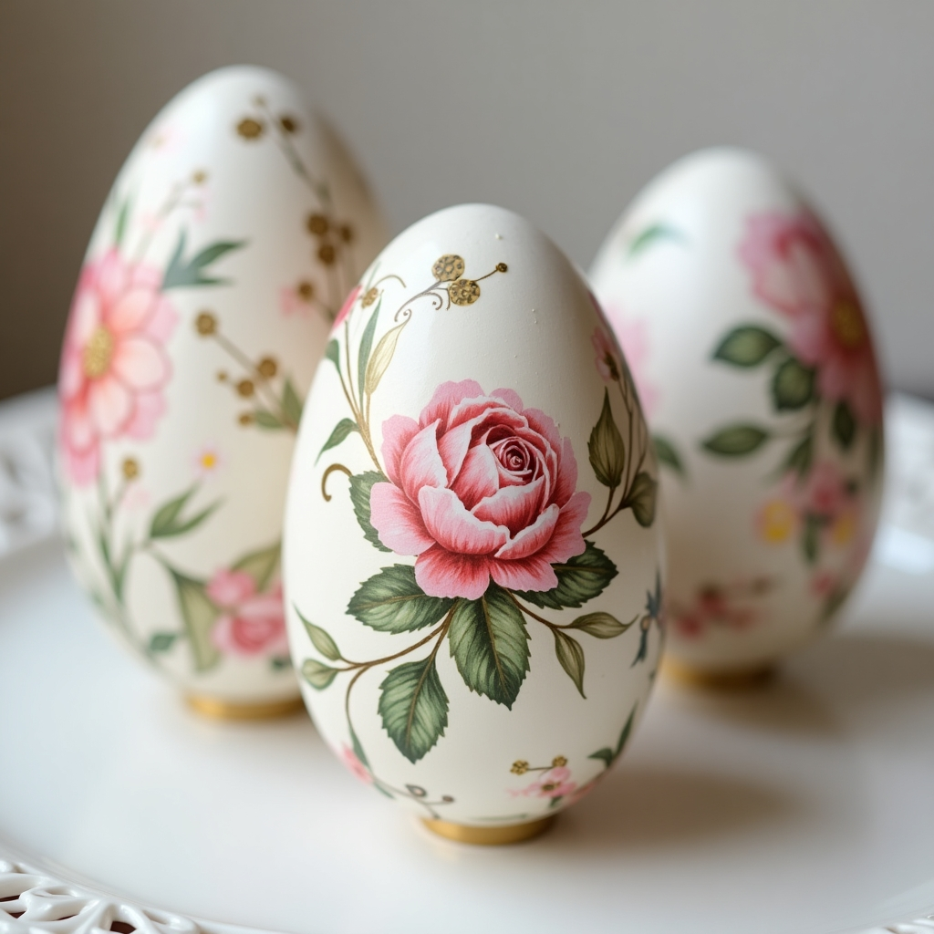 Bring vintage elegance to your Easter table with decoupage eggs. Using pastel floral tissue paper and gold accents, each egg becomes a miniature work of art. Carefully glue the patterned pieces and seal them with a glossy finish for a smooth, sophisticated look.