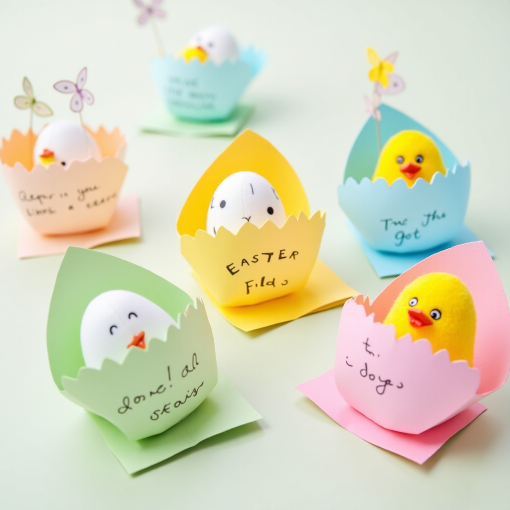 Interactive Easter cards take a playful approach to greetings. Each card features an outer eggshell layer that peels away to reveal a hidden chick and a handwritten message inside. Using bright colors and sturdy cardstock ensures the eggs maintain their shape while providing a fun tactile experience.