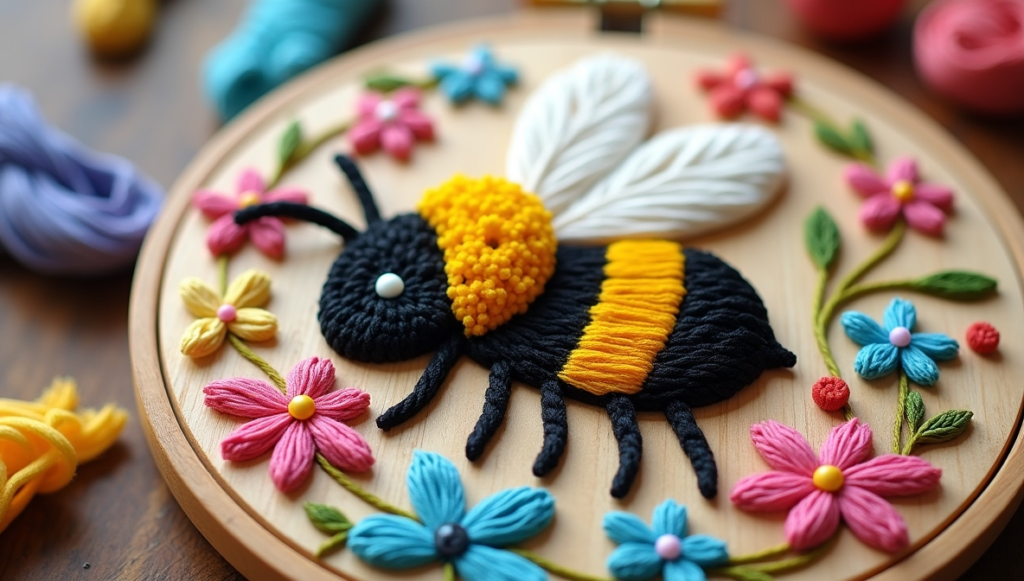 Colorful Floral Bee Embroidery