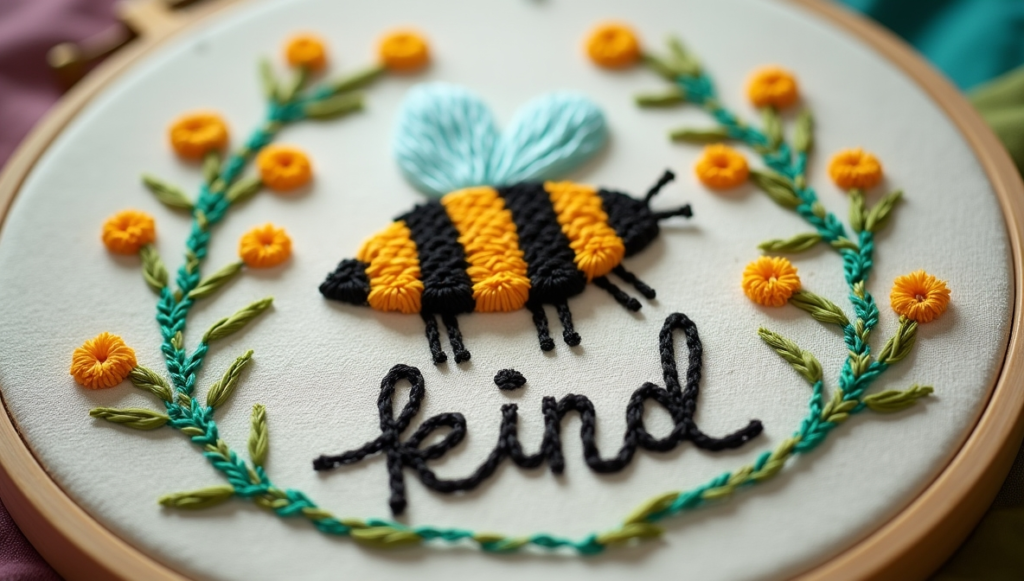 Bee and “Kind” Embroidery
