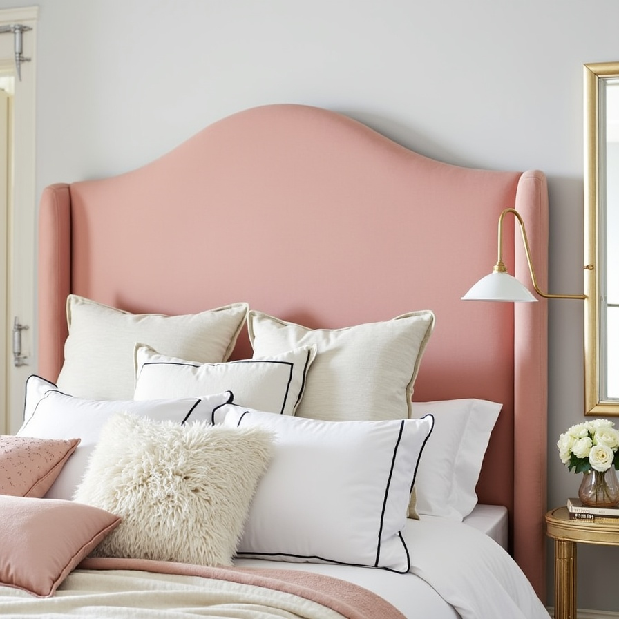 Blush Upholstered Headboard with Soft Romantic Appeal