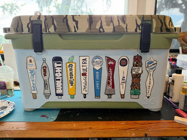 A Poker Cooler is perfect for card game enthusiasts. By adding playing card motifs, suits, or a poker-inspired color scheme, you create a thematic cooler that is both fun and visually interesting. This idea works well for game nights, casual parties, or fraternity events. Its clever design elevates the standard cooler, making it a functional centerpiece that reflects your interests.