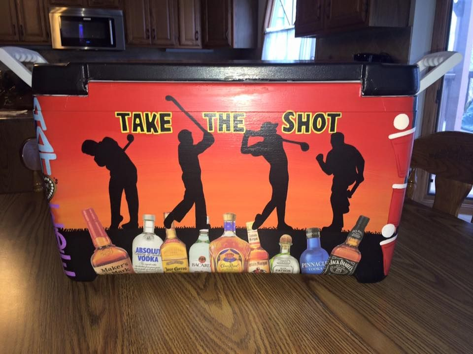 “Take the Shot!” is a playful, attention-grabbing frat cooler idea that doubles as a clever pun. Bold typography and vibrant design make it the highlight of any party setup. This cooler is perfect for hosts who enjoy humor and want a centerpiece that encourages interaction. It’s a simple yet effective way to inject personality into your event while keeping the design clean and memorable.