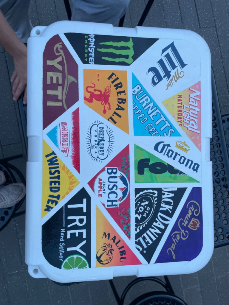 The Dice Cooler is a bold and visually striking frat cooler idea that’s sure to be a conversation starter. By making dice the centerpiece of the design, you create a playful theme that instantly catches the eye. This setup is simple to assemble yet looks impressive, making it ideal for both casual gatherings and themed parties. The combination of bright colors, clean lines, and creative dice placement ensures your cooler is not only functional but also a standout decorative element.