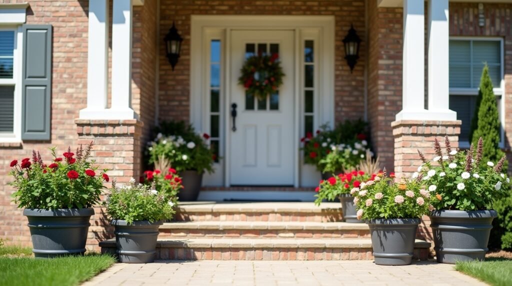 Bright, healthy foliage with bold blooms can instantly energize a front porch. Mix plants with unique shapes, like heart-shaped leaves, alongside vibrant reds and purples to create eye-catching contrast. Proper watering, soil care, and occasional fertilization ensure your pots stay lush and vibrant throughout the season. A well-maintained planter not only looks inviting but also demonstrates thoughtful gardening care.