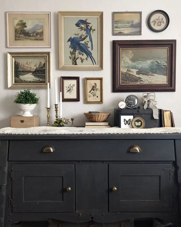 A nature-themed gallery wall brings a calming and organic feel into your home. By selecting landscape paintings, botanical prints, or bird illustrations, you can create a unified design that reflects the beauty of the outdoors. Mixing different frame styles and sizes adds character while maintaining cohesion through the shared theme. This type of gallery wall works well in living rooms, bedrooms, or even entryways, offering a peaceful visual escape. The natural elements help soften the overall look and make your interior feel more grounded and harmonious.
