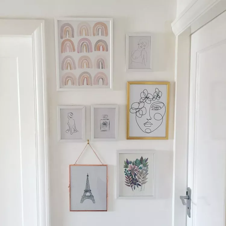 Choosing a single style, such as black-and-white drawings, creates a cohesive and sophisticated gallery wall. Arranging the pieces in a structured pattern, like a grid or staggered layout, adds visual interest while maintaining order. This minimalist approach works well in modern interiors, offering a clean and balanced aesthetic that doesn’t overwhelm the space.