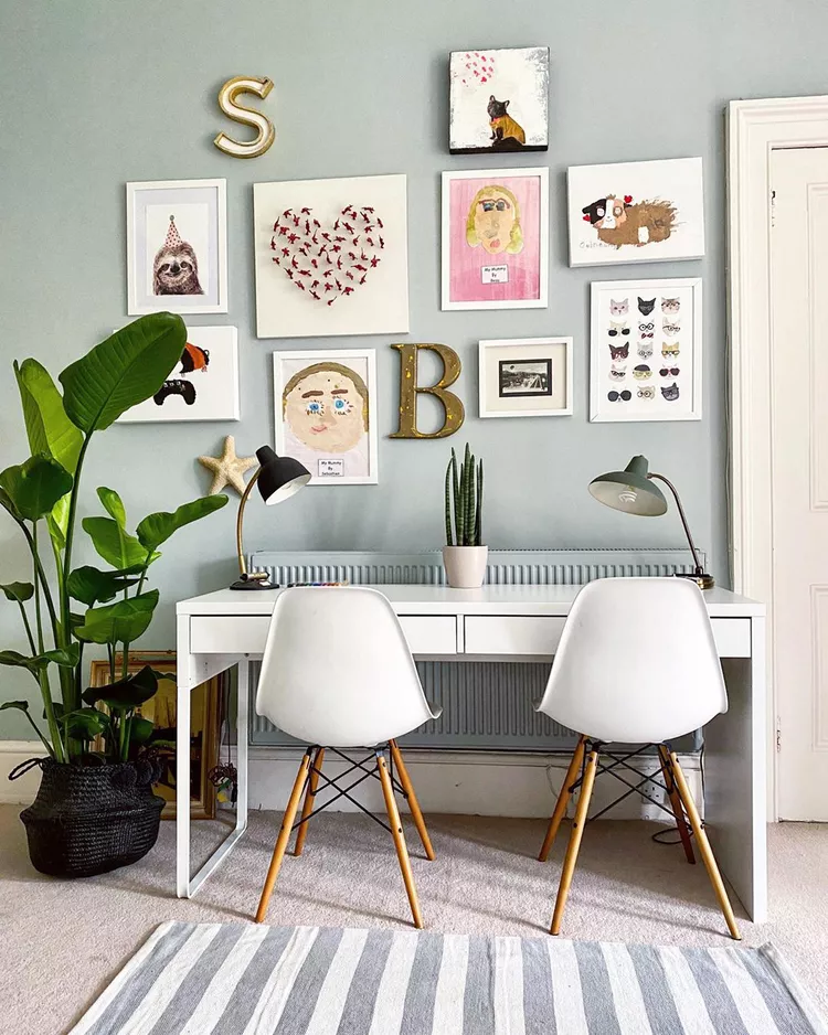 Adding a gallery wall to your home office is a great way to inspire creativity and productivity. Mixing professional artwork with personal pieces, such as children’s drawings, creates a balanced and meaningful display. This approach allows you to celebrate creativity while maintaining a stylish workspace. It also adds warmth to the room, making it feel less formal and more inviting. A personalized gallery wall can turn your office into a place you truly enjoy spending time in.